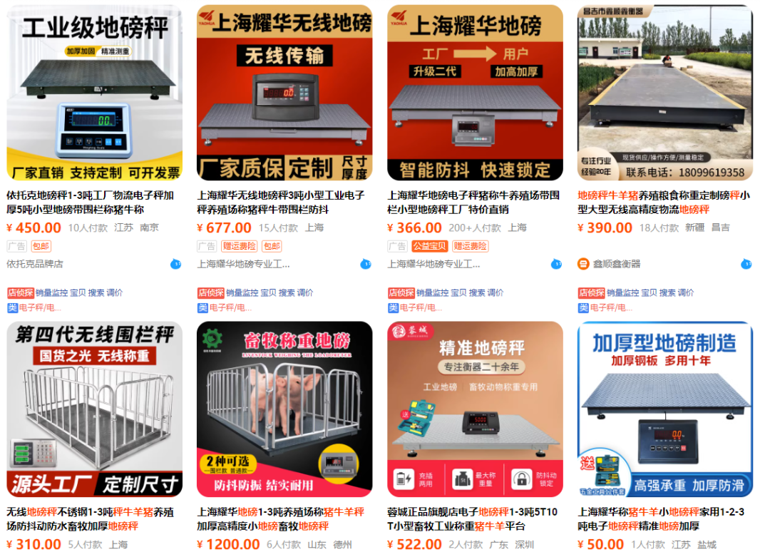 該店鋪售賣的地磅秤產品客單價在600-1000+不等,整體客單價偏高。接手前,商家齊樂將店鋪的定位人群放在了養殖戶群體,個體戶上,整體的需求量小,市場提升空間有限。